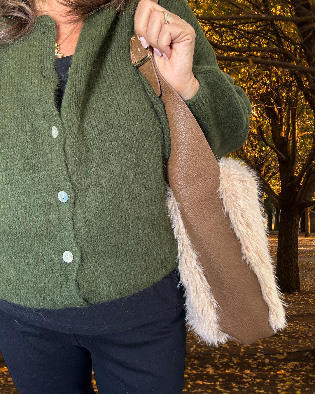 Spacious and stylish soft faux fur tote bag in various colours. Extra shoulder strap included.