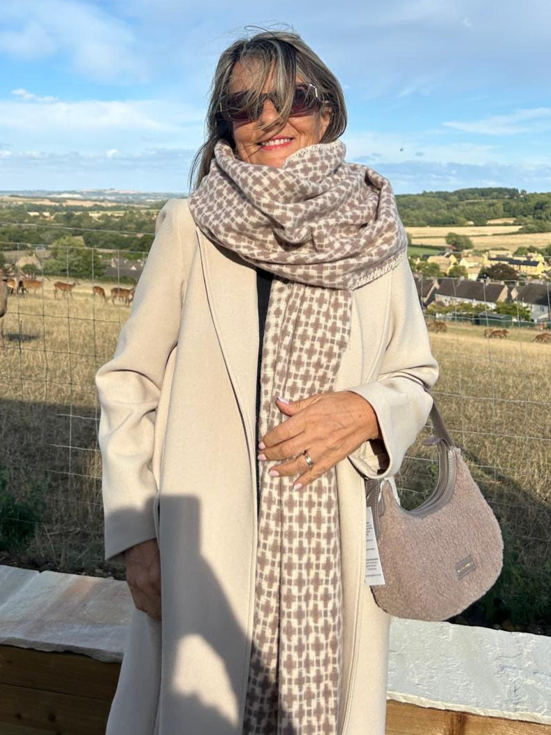 Add a touch of elegance with this super soft geometric patterned scarf.